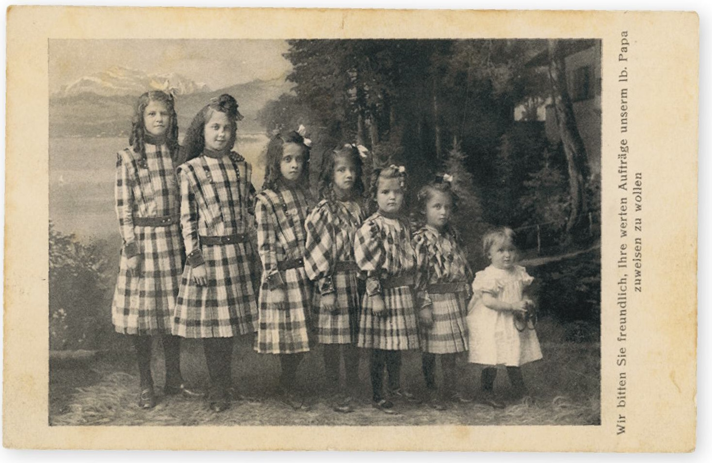 121 Die Geschwister König vor der Kulisse des Fotostudios, um 1910.