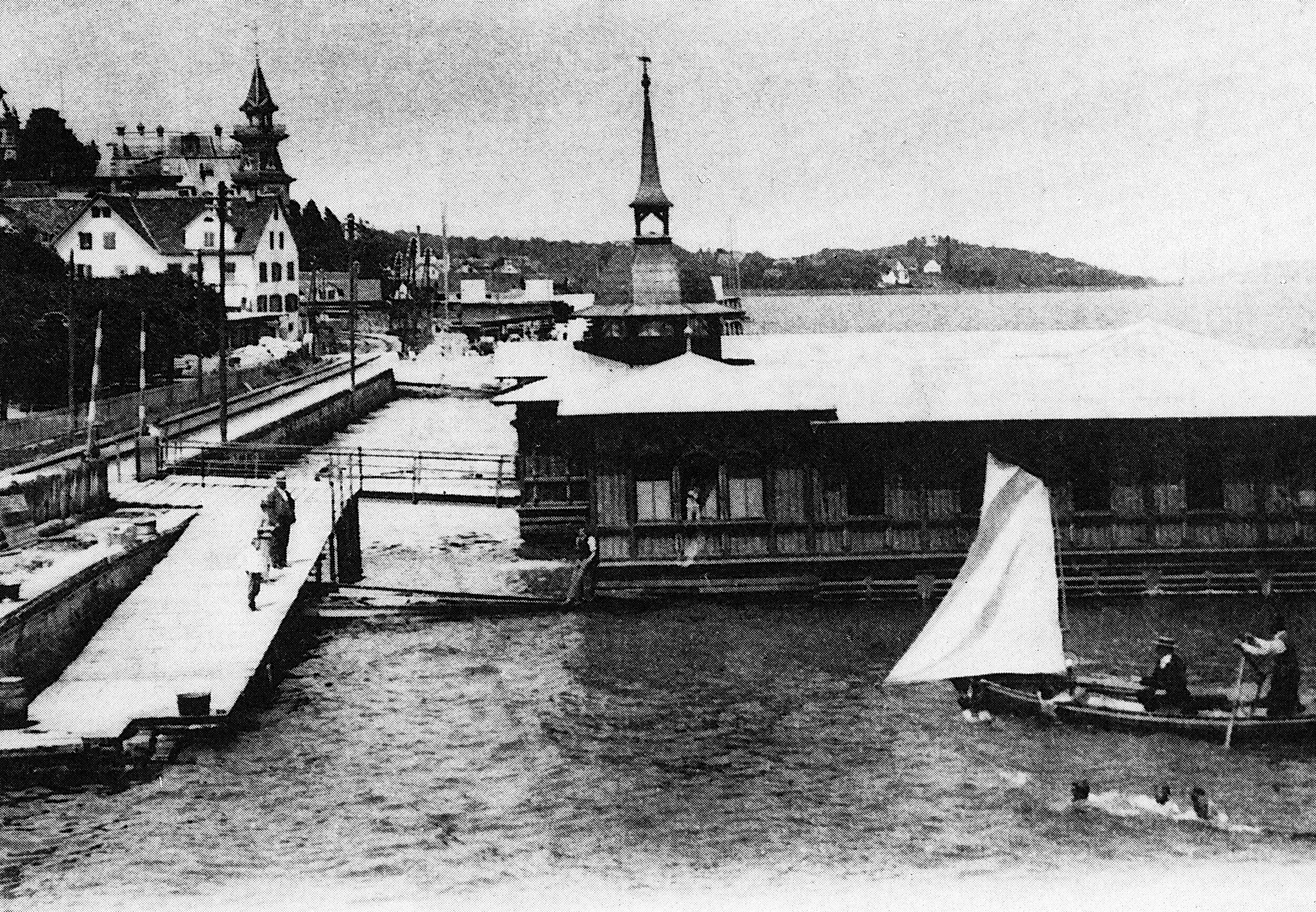 Am 26. Juli wird die neue Badanstalt eröffnet. Sie steht auf vier schwimmenden Eisenkasten, ist 29 Meter lang und 19 Meter breite und umfasst eine getrennte Männer- und Frauenabteilung mit je sechs geschlossenen und elf offenen Badezellen und einem Bassin.