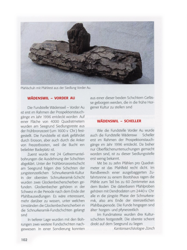 Nachstehend werden die von der Kantonsarchäologie verfassten Ausstellungstexte abdruckt, welche die Pfahlbauten in Wädenswil würdigen. An allen Fundstellen liegen die Reste mehrerer urgeschichtlicher Dörfer aus unterschiedlichen Zeiten übereinander.