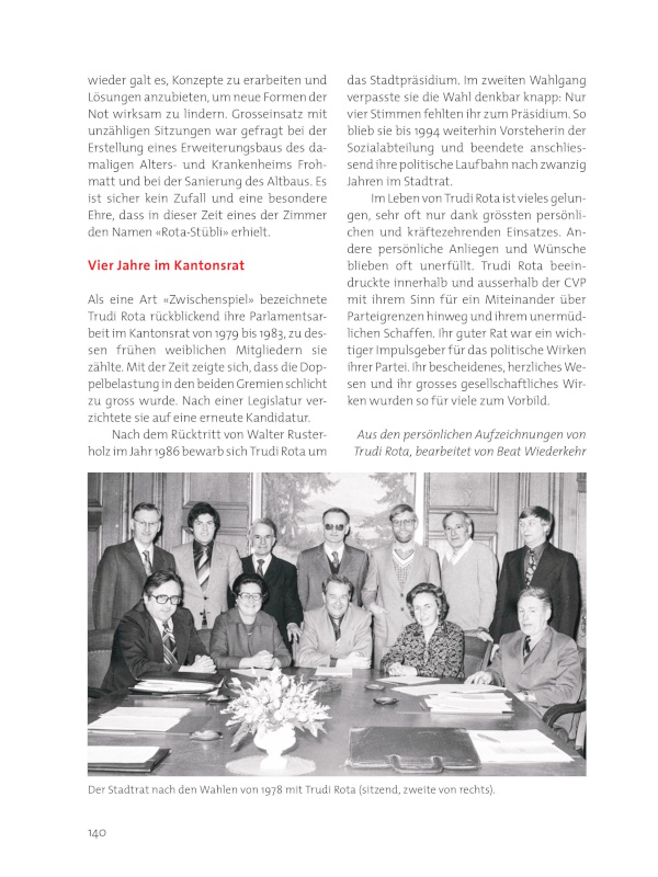 140 Der Stadtrat nach den Wahlen von 1978 mit Trudi Rota (sitzend, zweite von rechts).