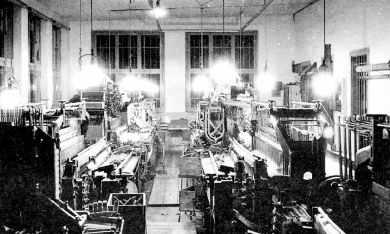 109 Der elektrisch beleuchtete Maschinensaal der Tuchfabrik Reidbach, Ende des 19. Jahrhunderts.