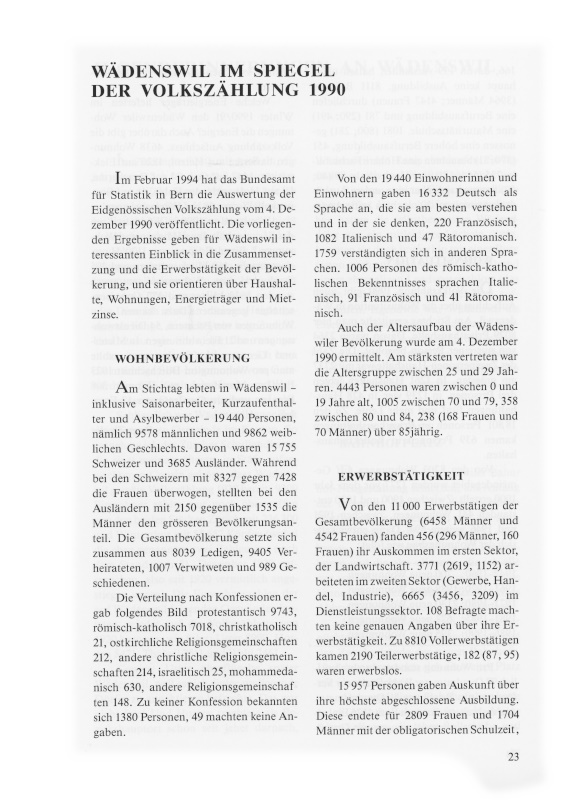 WÄDENSWIL IM SPIEGEL DER VOLKSZÄHLUNG 1990