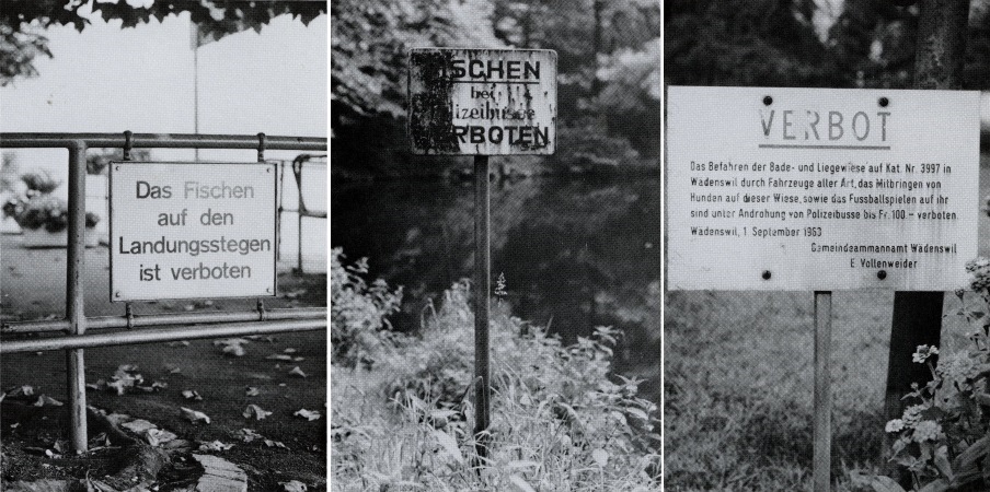 Die nachfolgenden Fotos aus Wädenswil zeigen einige solcher selbstsprechender Verbotstafeln.