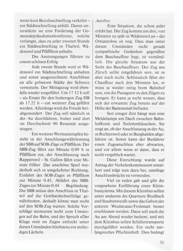 - Orientierung der Bevölkerung über neue Fahrplanprojekte oder generelle Probleme (Beispiel Taktfahrplan 1982)