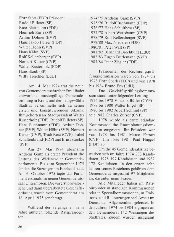 1982/83 Eugen Dürlemann (SVP) 1983/84 Peter Ziegler (FDP)