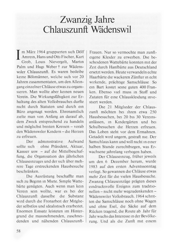 Zwanzig Jahre Chlauszunft Wädenswil