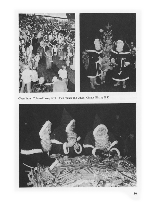 59a-c Oben links: Chlaus-Einzug 1974. Oben rechts und unten: Chlaus-Einzug 1983.