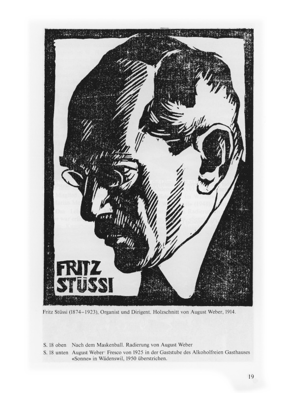 19 Fritz Stüssi (1874-1923), Organist und Dirigent. Holzschnitt von August Weber, 1914.