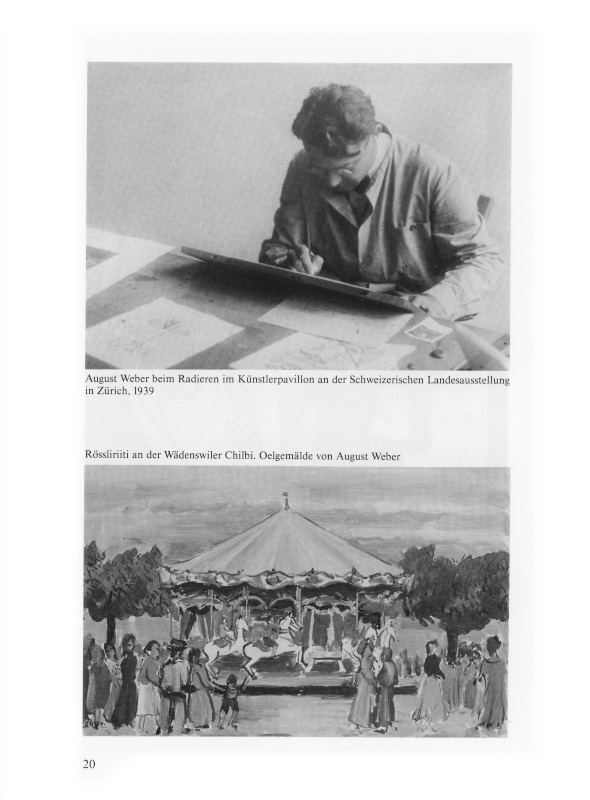20a August Weber beim Radieren im Künstlerpavillon an der Schweizerischen Landesausstellung in Zürich, 1939.