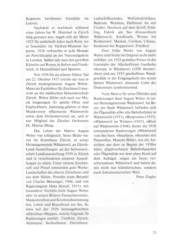 17b Blick vom Seeplatz auf das Wädenswiler Bahnhofsquartier. Radierung von August Weber, 1930.