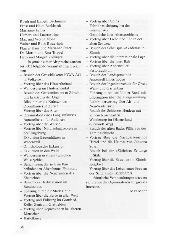 Dem Gründerkreis der «Aktiven Senioren», wie man sich nennt, gehörten oder gehören an: