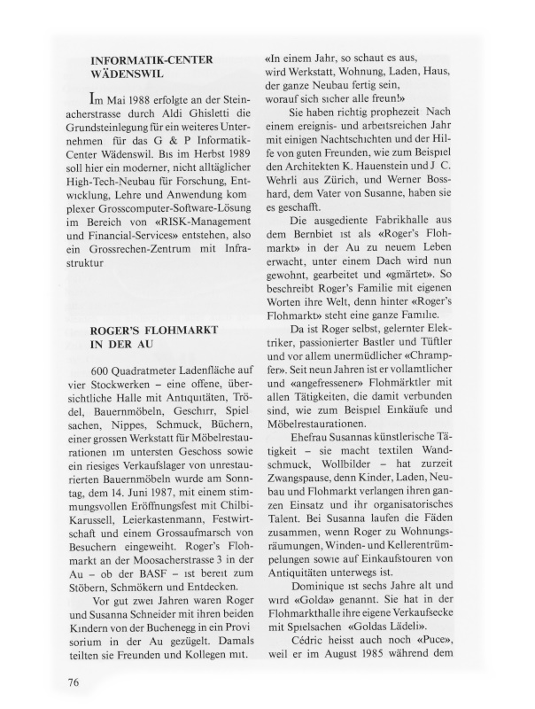Rogers Flohmarkthalle ist ein «Raritäten-Warenhaus» an der Moosacherstrasse 3 in der Au. Familie Schneider freut sich auf Ihren Besuch.