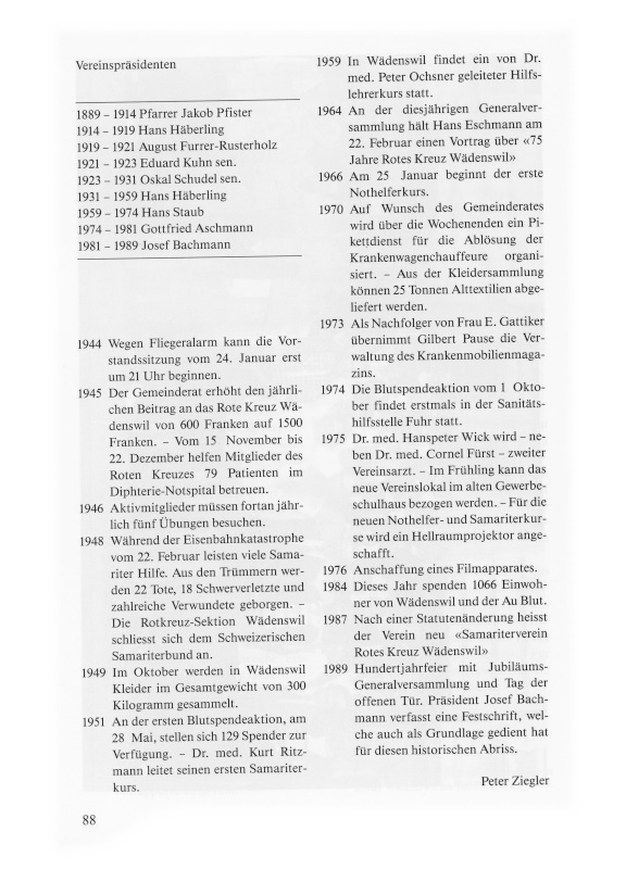 An der diesjährigen Generalversammlung hält Hans Eschmann am 22. Februar einen Vortrag über «75 Jahre Rotes Kreuz Wädenswil».