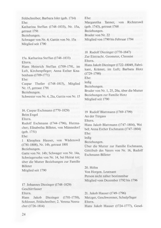 Metzger, Mitglied Nr. 21; Margaretha Steffan (1753–1821), Nr. 21a