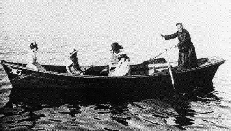 Im Sommer 1910 ging es mit einem Ruderschiffchen auf den Zürichsee. Die Frau des Photographen, diesmal ohne Hut, bedient die Stehruder. Die Kinder sitzen mit ihren Strohhüten brav und sittsam im Boot. Der Photograph selber (das Schicksal aller Photographen) tritt nicht in Erscheinung (Bild Nr. 10).