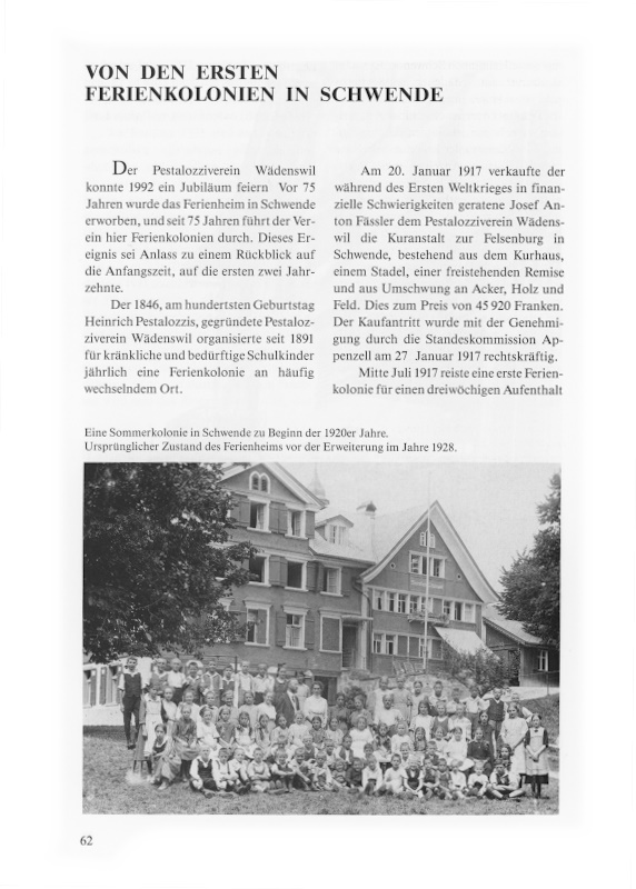 «Die meisten Kinder sehen schon bedeutend besser aus als zu Beginn der Saison. Auf den bisher unternommenen Ausflügen nach dem Leuenfall, an den Seealpsee und auf Wildkirchli − Ebenalp − Schäfler konnten wir deutlich die Steigerung der körperlichen Leistungsfähigkeit konstatieren.» So las man 21. Juni 1924 im Schwendebericht, aus dem man zudem erfuhr, dass alle Kinder bei der Ankunft gewogen wurden, damit man am Ende der Koloniezeit die Gewichtszunahme registrieren konnte.