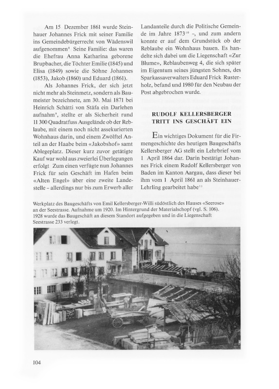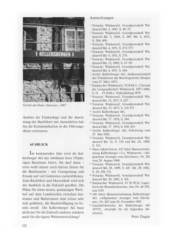 16 Hans Jakob Furrer, 125 Jahre Bauunternehmung Kellersberger+Co. Wädenswil. «Allgemeiner Anzeiger vom Zürichsee», Nr. 201 vom 29. August 1968.