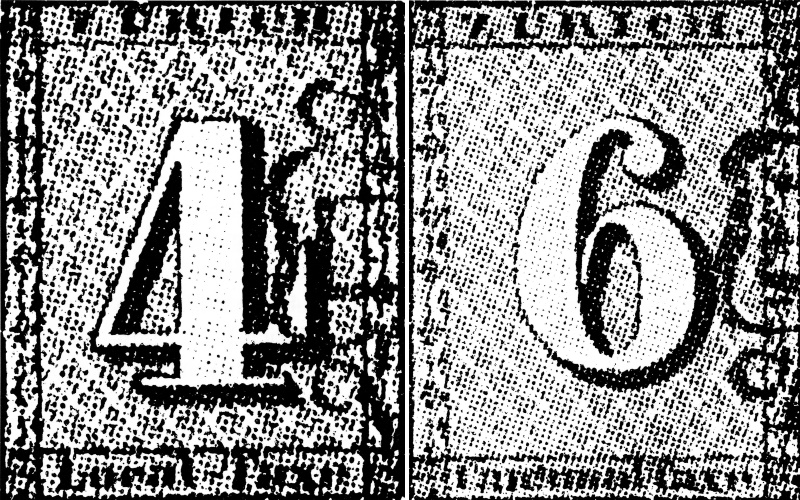 «Zürich 4» und «Zürich 6» - die stark vergrösserten, 1843 herausgegebenen ersten kantonalen Briefmarken.