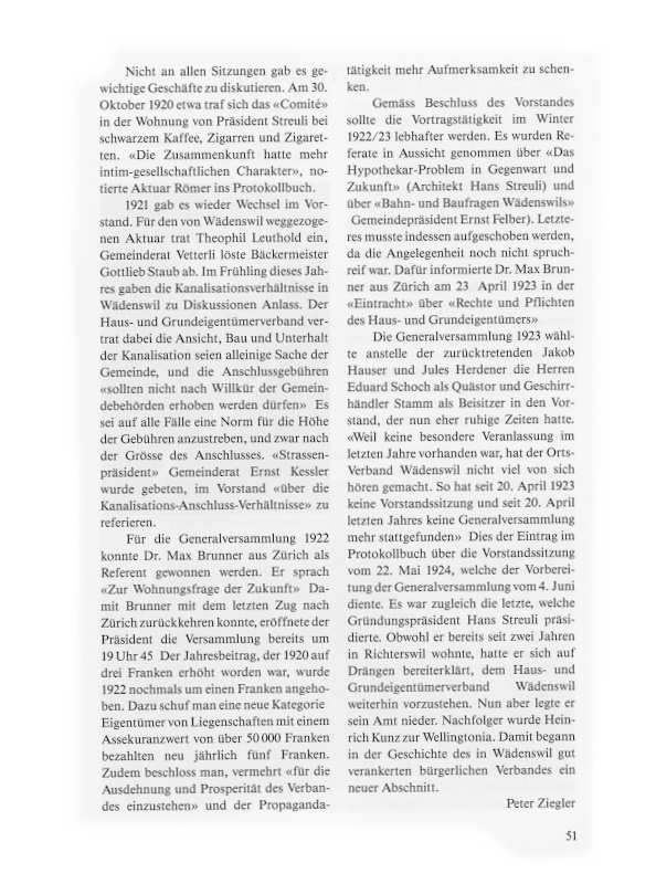 «Als dringendste Notwendigkeit erachten wir vorerst eine gegenseitige Vereinbarung sämtlicher Arbeitgeber der Gemeinde Wädenswil, welche die Anstellungs- und Entlassungsverhältnisse in der Weise ordnet, welche für die Arbeiter eine weitere Arbeitsmöglichkeit im Ortsgebiete Wädenswil ausschliesst, insofern sie die frühere Arbeitsstelle gesetzwidrig oder gröblich verlassen, ohne die Einhaltung der gegenseitig vereinbarten oder gesetzlichen Kündigungsfristen. Ein weiterer Ausbau von Arbeiterschutzbestimmungen dürfte sich anschliessen und vielleicht besonders im heutigen Augenblick das Gute zeitigen, die Arbeiterschaft vor unbesonnenen Schritten, welche von aussen geschürt werden, zu bewahren und die Arbeitgeber vor unmittelbar bevorstehenden Unruhen zu schützen.»