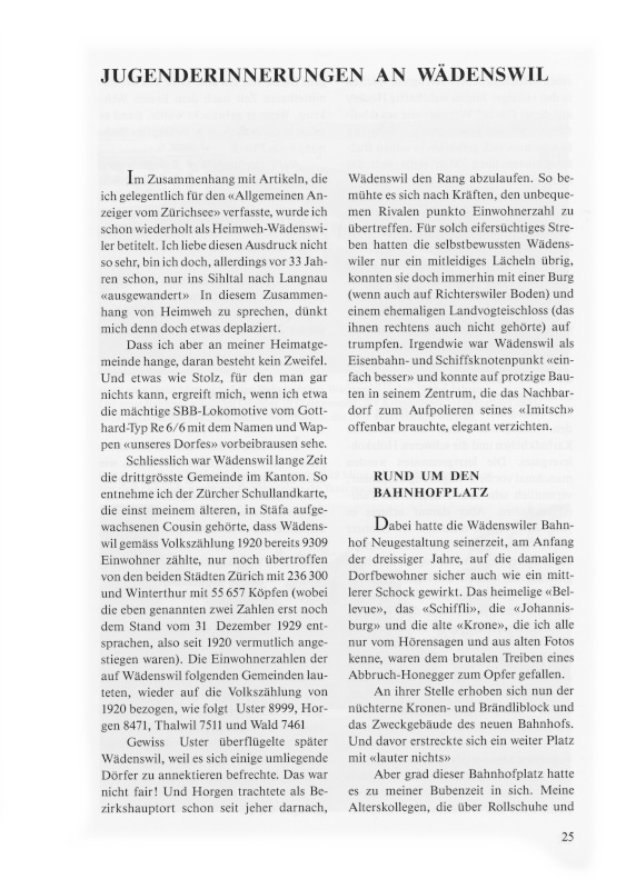 Seeplatz. Dort trafen wir Buben uns nicht nur zum Fischen, auch wenn dieses «Würmerbaden» bei uns vor allem während der Sommerferien einen hohen Stellenwert genoss. Von der Hafenmauer beim Schiffsteg fischten wir uns jeweils die Leugel und Schwalen aus dem See.
