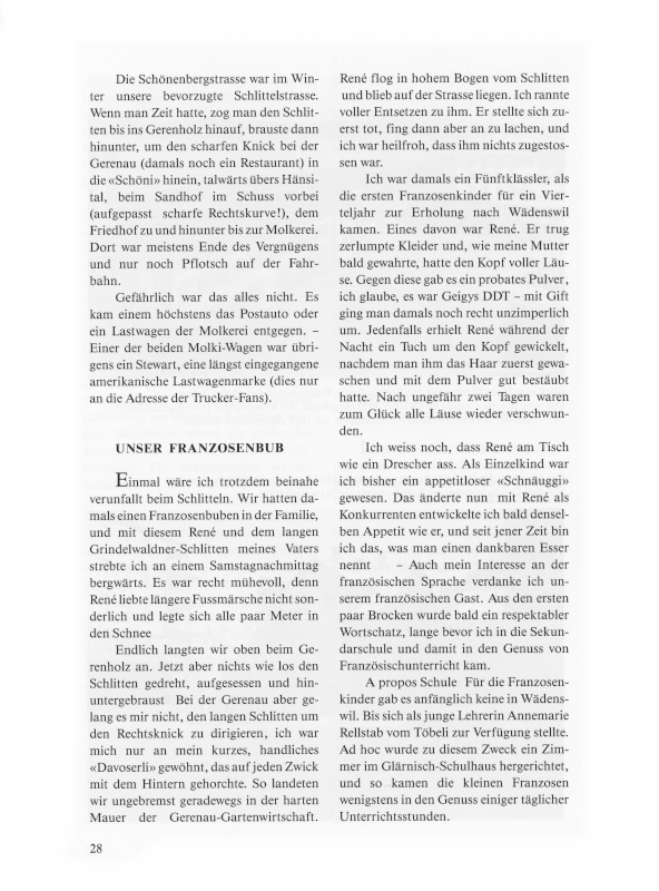 Hingegen sind mir die Haeseli-Kinder Georges, Hedi und Hermann von der originellen «Seeboot-Bahn» als temporäre Klassenkameraden geläufig geblieben. Wir beneideten sie und ihre Herumreiserei nicht wenig und ahnten nicht, dass sie es unter dem Regime eines strengen Vaters nicht immer leicht hatten und schwerer arbeiten mussten, als wir Sesshaften. Georges kam später als selbständiger Schausteller 1965 mit seiner Himalaya-Bahn ein letztes Mal an unsere Chilbi; nachher verkaufte er dieses Rundfahrgeschäft an Sepp Hammer, der damit ein ständiger Wädenswiler Chilbigast wurde. Beide, Sepp Hammer und Georges Haeseli, sind inzwischen verstorben. Aber Sepps Frau, Mary Hammer, kommt noch jedes Jahr mit dem «Derby Star»-Spielwagen nach Wädenswil.