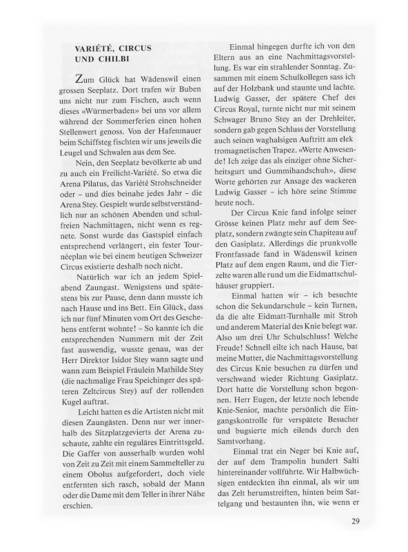 Und zudem − als echter Wädenswiler − auch ein Chilbifan. Als Bub schon kannte ich zahlreiche Artisten und die meisten Schausteller vom Sehen oder dem Namen nach. Das ist bis heute so geblieben. Ab und zu sass in den Tagen vor der