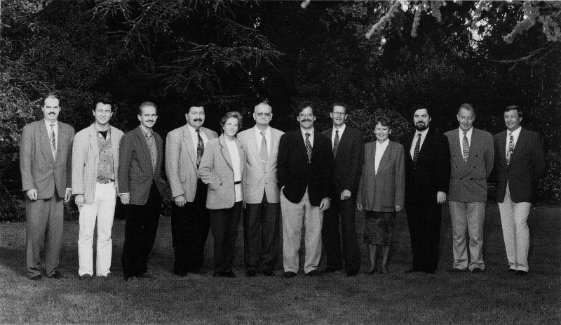 Stadtrat Wädenswil 1994. Von links nach rechts: Heinz Kundert (Stellvertreter des Stadtschreibers), Christof Wolfer, Paul Rota, Vinzenz Bütler, Hanne Herzog, Hans Ruedi Maurer (Stadtschreiber), Stadtpräsident Ueli Fausch, Hansruedi Meier, Brigitte Poltera, Dr. Bruno Ern, Ernst Hitz, Jakob Hauser (Stellvertreter des Stadtschreibers).