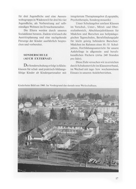 17 Kinderheim Bühl um 1960. Im Vordergrund das damals neue Werkschulhaus.