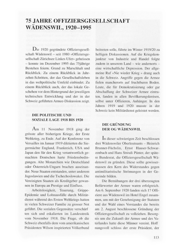In den 1970er Jahren standen in der Schweiz und in Wädenswil wichtige Entscheide an. Die Kavallerie wurde abgeschafft; die Schweiz erhielt Hunter und Panzer 68. Die Stimmberechtigten des Kantons Zürich beschlossen 1975 die Verlegung des Waffenplatzes Zürich ins Reppischtal. Grosse Genugtuung verspürte man in der OG Wädenswil über die am 4. Dezember 1977 massiv verworfene Münchensteiner-Initiative für die Schaffung eines zivilen Ersatzdienstes. Ebenso befriedigt war man 1978 von der Annahme des Kredites für den Bau der neuen Wädenswiler Schiessanlage auf Beichlen.