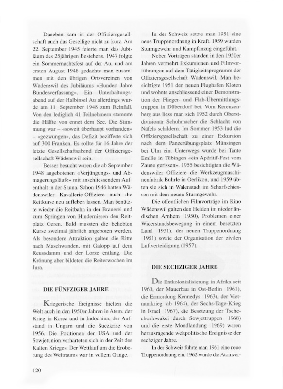 Herausragendes Ereignis der siebziger Jahre bildete für die Offiziersgesellschaft Wädenswil das Jubiläum des 50-jährigen Bestehens. Es wurde am 5./6. September 1970 mit einem Galadiner dansant im Schinzenhof Horgen, mit einem Ball auf dem Zürichsee-Schiff