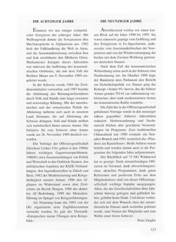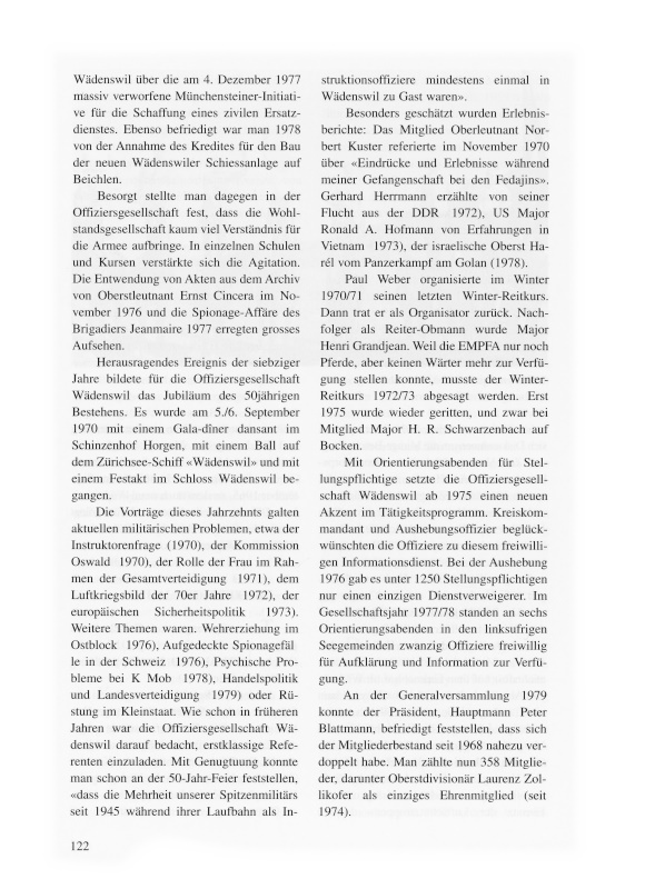 An der Generalversammlung 1979 konnte der Präsident, Hauptmann Peter Blattmann, befriedigt feststellen, dass sich der Mitgliederbestand seit 1968 nahezu verdoppelt habe. Man zählte nun 358 Mitglieder, darunter Oberstdivisionär Laurenz Zollikofer als einziges Ehrenmitglied (seit 1974).