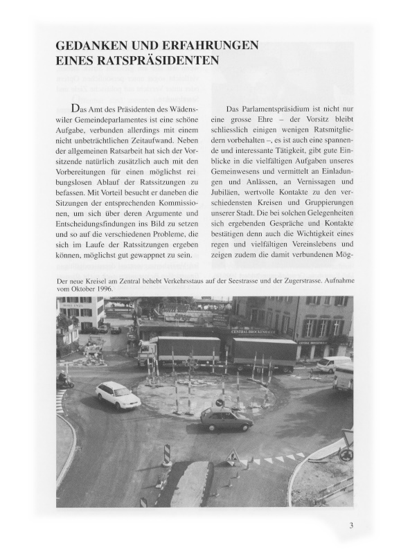3 Der neue Kreisel am Zentral behebt Verkehrsstaus auf der Seestrasse und der Zugerstrasse. Aufnahme vom Oktober 1996.