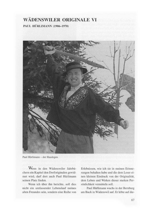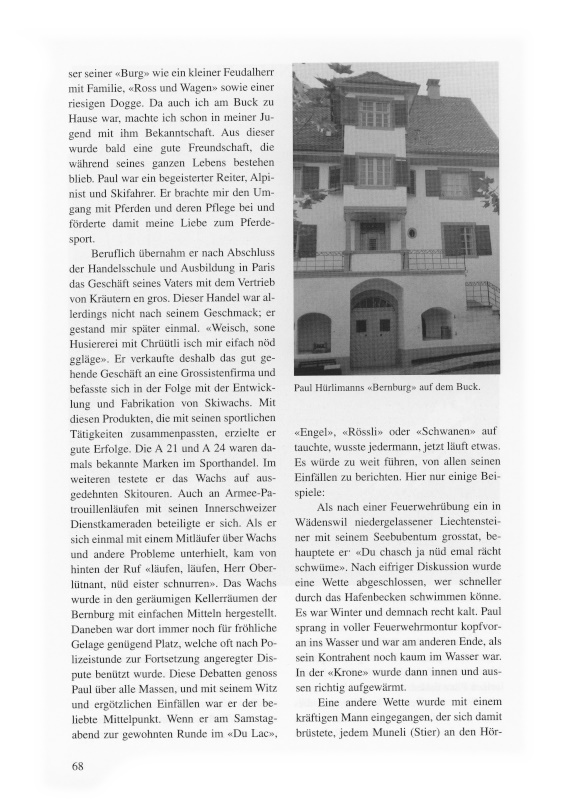 «Schwanen» die Schützenkönige gefeiert. Anwesend war der kantonale Schützenmeister. Paul geriet mit ihm in ein Wortgefecht über das Schiesswesen. Er fand, es nütze der Kriegsvorbereitung gar nichts, wenn vor jeder Schussabgabe sieben Mal tief ein- und ausgeatmet werde, vielmehr sollte die schnellentschlossene Schussabgabe geübte werden. Den Worten folgte eine Demonstration; Ziel Aufschrift «KEGELBAHN», vom B mittlerer Querbalken, Karabiner stehend im Anschlag, Schuss, getroffen. Das hinter dem «B» die Hauptwasserleitung in der Wand durchführte, war in der Demonstration nicht vorgesehen, hatte aber die verheerende Wirkung, dass sich ein kräftiger Wasserstrahl in die Wirtsstube ergoss und den Pegelstand sichtlich ansteigen liess, bis nach langer Suche der Hausmeister Meier den Haupthahn schliessen konnte. Inzwischen stellte man die Stühle auf die Tische und debattierte dort oben weiter.