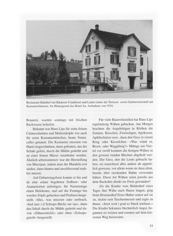 Im Jahre 1962 verkaufte Hans Lips das alte Wohnhaus mit Wirtschaft und Bäckerei beim Bahnhof, und am 3. August 1970 verstarb Mutter Lips im 85. Lebensjahr und wurde auf dem Friedhof Wädenswil zur Ruhe gebettet.