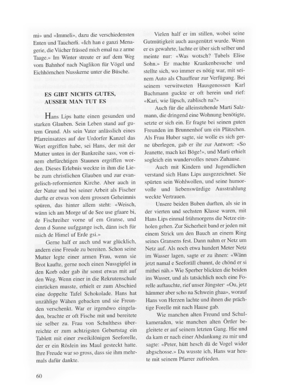 Aber auch gegen Schweizer, die nie zufrieden waren, konnte er sich ereifern: «Dene Stänkerer sett mer e Rageete in Hinder stecke und si uf Moskau schüüsse.» Er liebte seine Heimat, ganz besonders die Au, und war stolz, ein Schweizer zu sein.