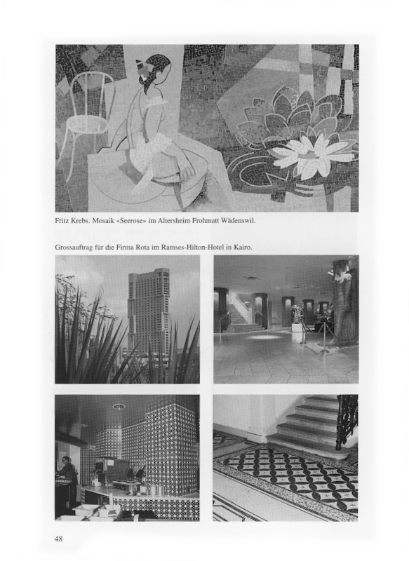 Im Stadtspital Waid in Zürich versetzt der junge Berufsmann drei Keramikmosaikbilder des bekannten Künstlers Max Gubler. Dies ist der Anfang einer wertvollen, bereichernden und über viele Jahre dauernden Zusammenarbeit der Firma mit verschiedenen Künstlern, unter anderen Truninger, Butz, Häfelfinger und insbesondere mit dem Kunstmaler Fritz Krebs, dessen letztes grosses Mosaik «Seerose» 1989 im Altersheim «Frohmatt» Wädenswil eingeweiht wird.