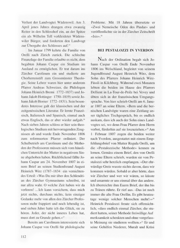 7 Zentralbibliothek Zürich, Familienarchiv Orelli. Drucke: ZT 1956 und J. Wirz. Briefe von Johann Kaspar von Orelli aus seinem 20. Lebensjahr, Neujahrsblatt 1890 und 1891 zum Besten des Waisenhauses in Zürich, Zürich 1890/91.
