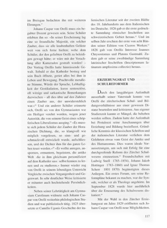 46 Die Schriften J. C. von Orellis sind zusammengestellt bei Robert Keist. Johann Caspar von Orelli, Zürich 1933, S. 321-333. Das Verzeichnis umfasst über 150 Werke.