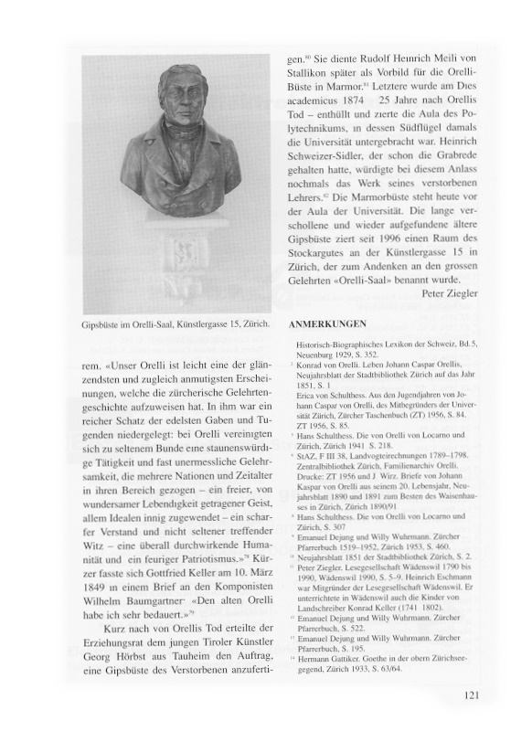 47 Heinrich Schweizer-Sidler. Gedächtnisrede auf J. Caspar Orelli, gehalten nach der Enthüllung einer in der Aula des Polytechnikums aufgestellten Marmorbüste des Gefeierten, Zürich 1874, S. 7.