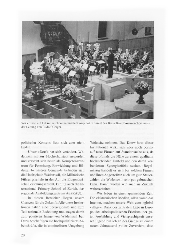 20 Wädenswil, ein Ort mit reichem kulturellem Angebot. Konzert der Brass Band Posaunenchor unter der Leitung von Rudolf Geiger.