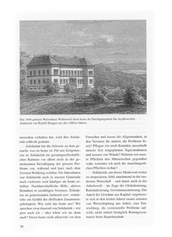 30 Das 1848 gebaute Waisenhaus Wädenswil dient heute als Durchgangsheim für Asylbewerber. Stahlstich von Rudolf Ringger aus den 1860er Jahren.