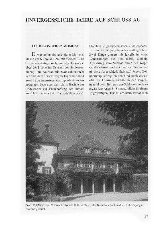 47 Das 1928/29 erbaute Schloss Au ist seit 1989 im Besitz des Kantons Zürich und wird als Tagungszentrum genutzt.