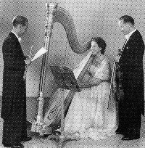 Das 1950 gegründete «Zürcher Harfentrio»: Willy Urfer (Flöte), Emmy Hürlimann (Harfe) und Walter Gerhardt (Bratsche).