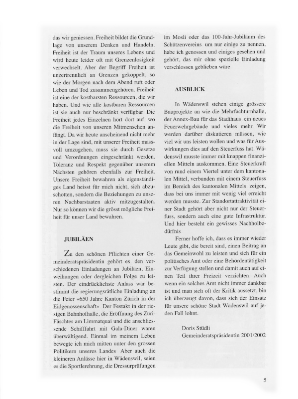 Gemeinderatspräsidentin 2001/2002