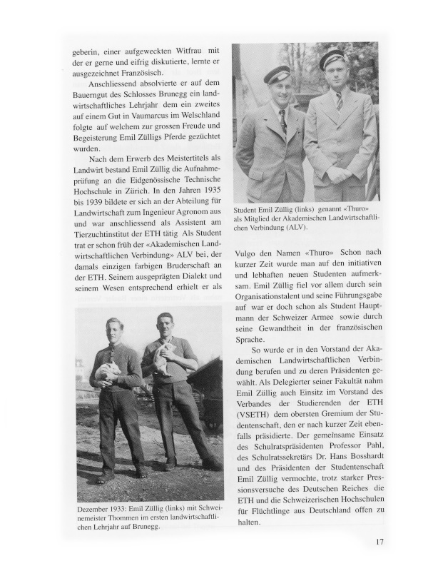 17a Dezember 1933: Emil Züllig (links) mit Schweizermeister Thommen im ersten landwirtschaftlichen Lehrjahr auf Brunegg.