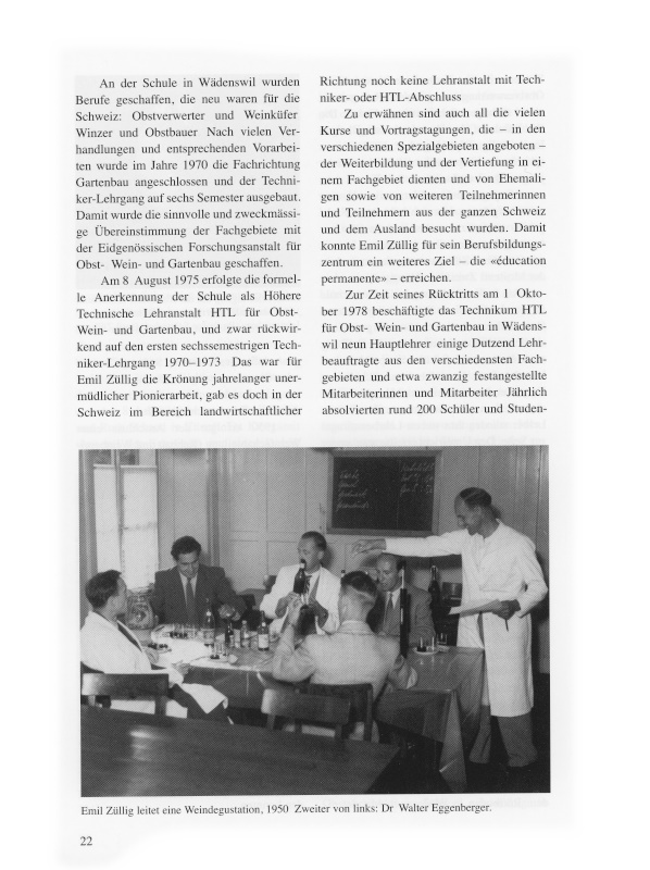 22 Emil Züllig leitet eine Weindegustation, 1950. Zweiter von links: Dr. Walter Eggenberger.