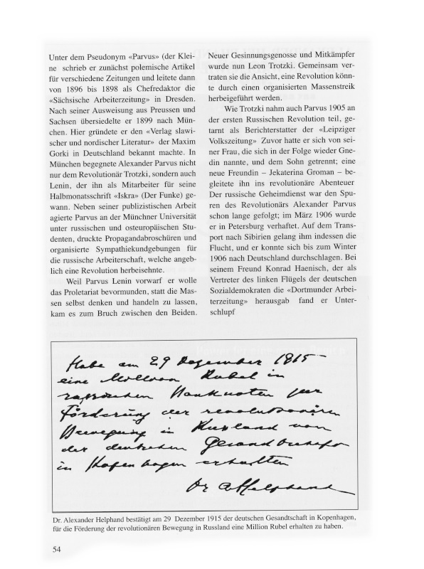 3 Elisabeth Heresch. Geheimakte Parvus, S. 364. – Winfried B. Scharlau, Freibeuter der Revolution. Parvus-Helphand, eine politische Biographie. Köln 1964, S. 320.