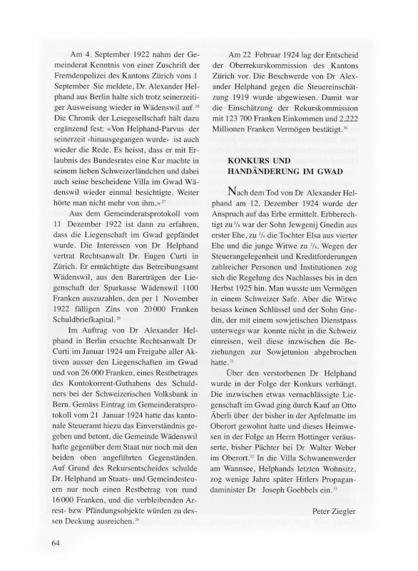 23 «Allgemeiner Anzeiger vom Zürichsee», Nr. 149 vom 28. September 1921 und Nr. 151 vom 1. Oktober 1921.