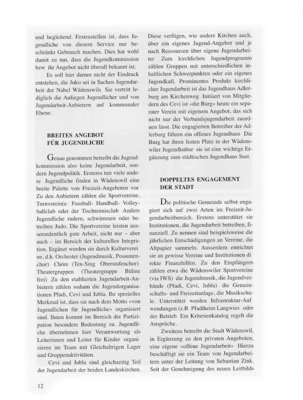 11a Seit März 2002 hat der Ortsteil Au wieder einen eigenen Jugendtreff. Anja und Jugendarbeiter Tom Manera betreuen die jugendlichen Gäste an der Bar.