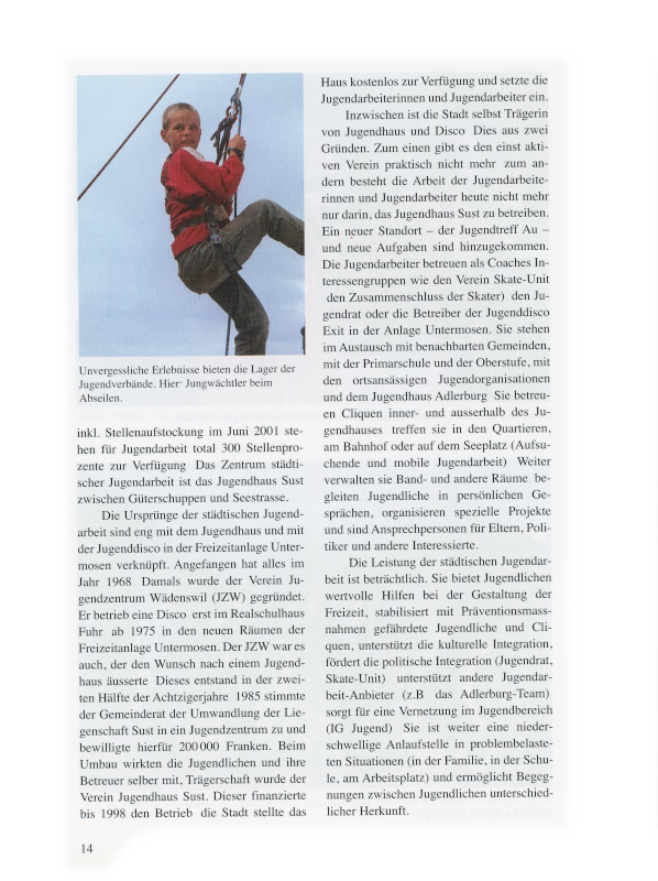 14 Unvergessliche Erlebnisse bieten die Lager der Jugendverbände. Hier Jungwächtler beim Abseilen.